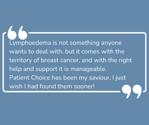 Lymphoedema is not something anyone wants to deal with, but it comes with the territory of breast cancer, and with the right help and support it is very manageable. Patient Choice has been my saviour and I just wish I had found them sooner!